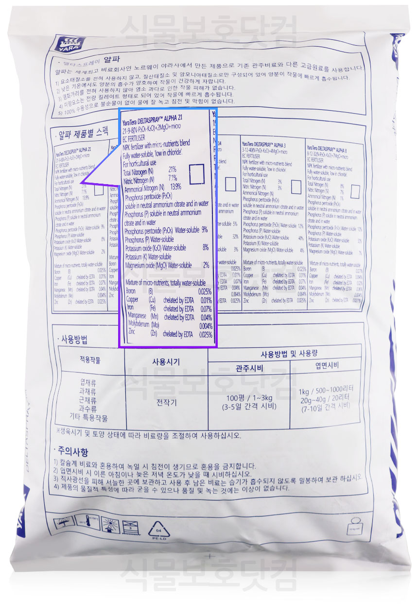 ¾ß¶ó ¾ËÆÄ21 25kg 21-9-8 ³×´ú¶õµå ¼öÀÔºñ·á ºü¸¥ Èí¼ö 2:1:1 ¼ºÀå¿ë