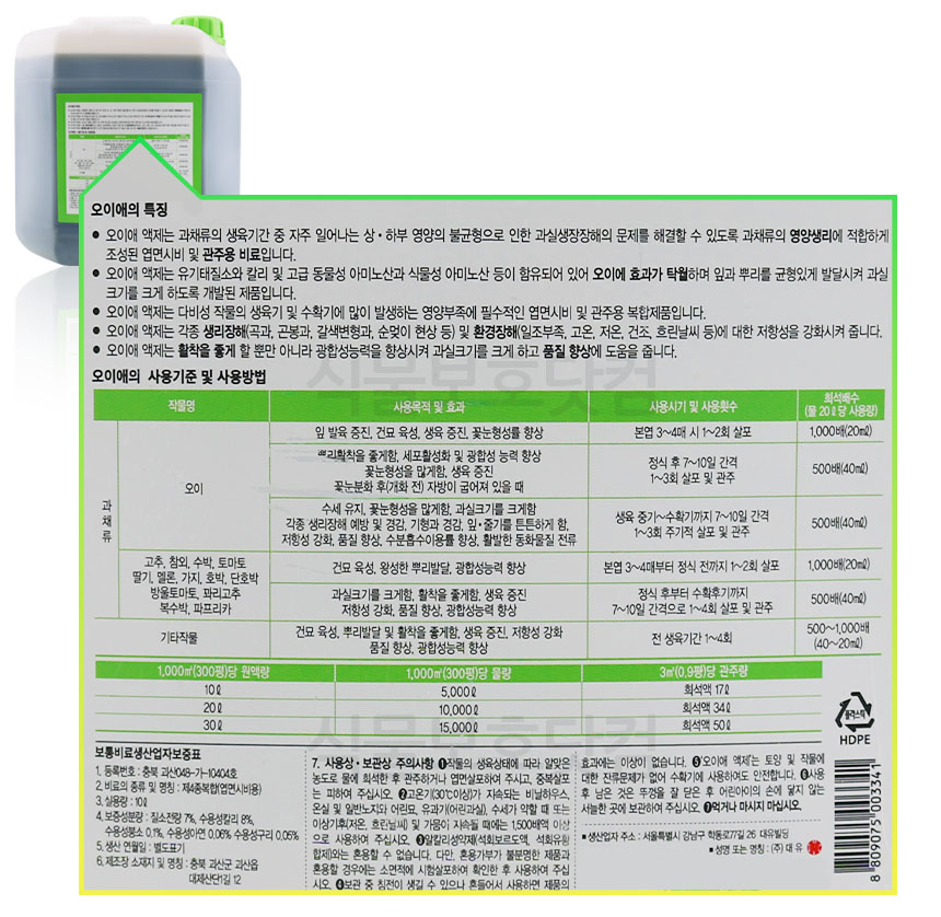 ´ëÀ¯ ¿ÀÀÌ¾Ö 10L ¿ÀÀÌ ºñ´ëÁ¦ °úä·ù ½Ä¹°¿µ¾çÁ¦